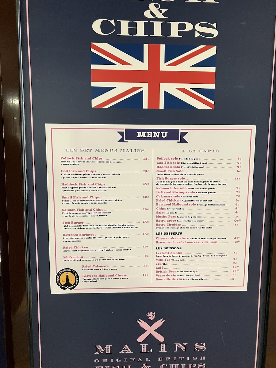 Welcome to Malins Fish and Chips, a hidden gem nestled in the heart of Paris at 11 Rue Tronchet. This cozy café is not just a typical eatery; it’s a delightful experience that transports you straight to Britain with every bite. The menu features classic, high-quality fish and chips, freshly cooked to order, ensuring that you savor the authenticity of traditional British cuisine.